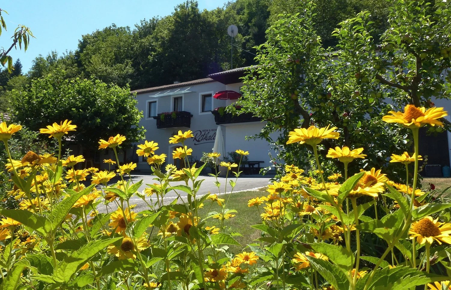 Wer das Leben am Winzerhof in seiner schönsten Form kennenlernen möchte, der ist auf unserem Hof am Rande der Wachau richtig. Unser Betrieb ist Mitglied bei „Urlaub am Bauernhof“ und mit 4 Blumen ausgezeichnet. Von allen Zimmern und der Ferienwohnung blicken Sie in unseren weitläufigen Garten. Dort laden Liegestühle zum Entspannen ein und in der Laube lässt sich ein gutes Glas Wein genießen.